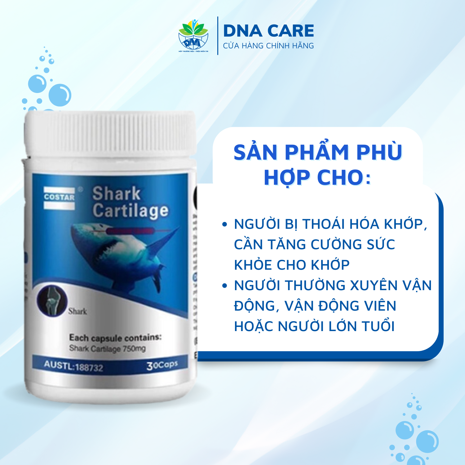 Viên uống xương khớp sụn cá mập Shark Cartilage Costar hỗ trợ tạo chất nhờn cho khớp hộp 30 viên