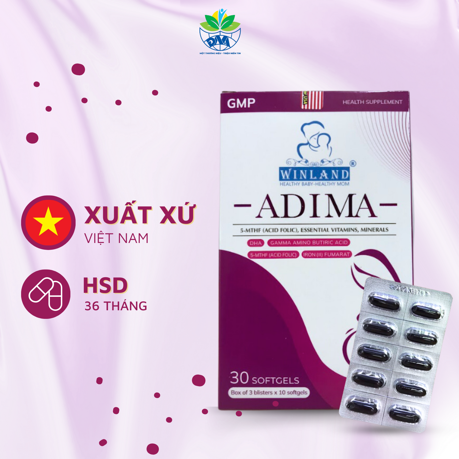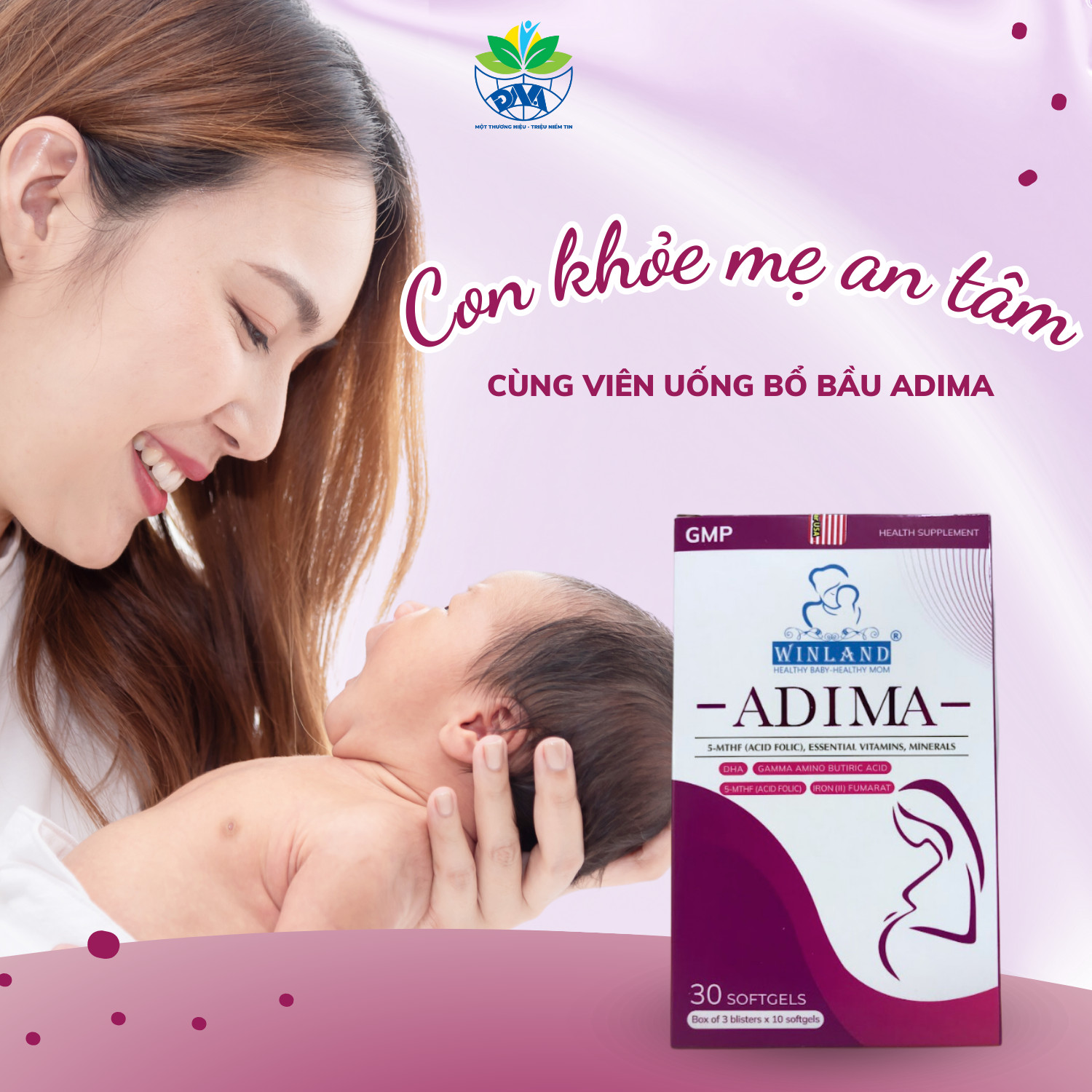 Viên uống bổ bầu Adima, bổ sung vitamin tổng hợp cho bà bầu vỉ 3x10 viên