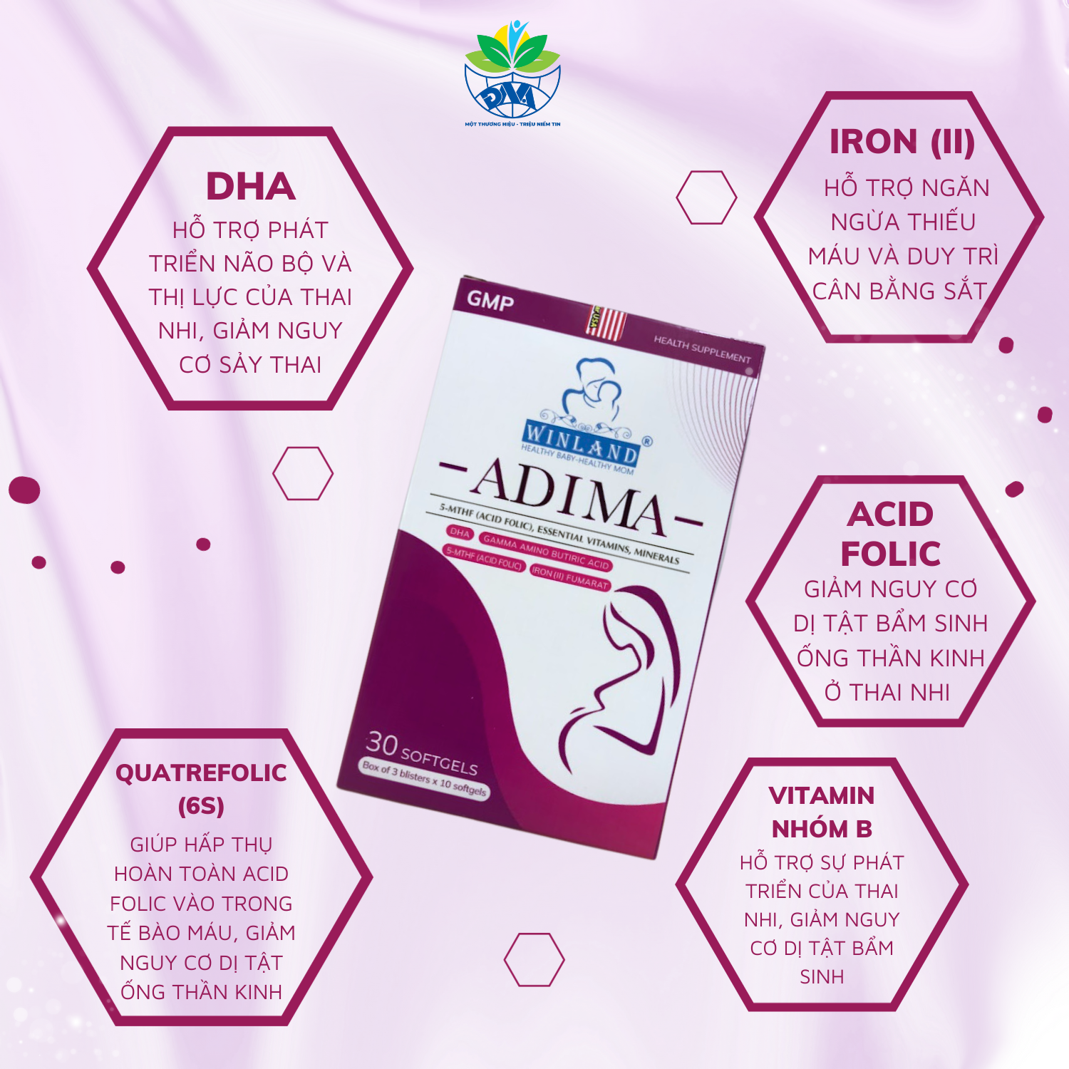 -DHA: hỗ trợ phát triển não bộ và thị lực của thai nhi, giảm nguy cơ sảy thai, cải thiện tình trạng tâm trí và tinh thần của bà bầu, cùng với lợi ích cho sức khỏe tim mạch