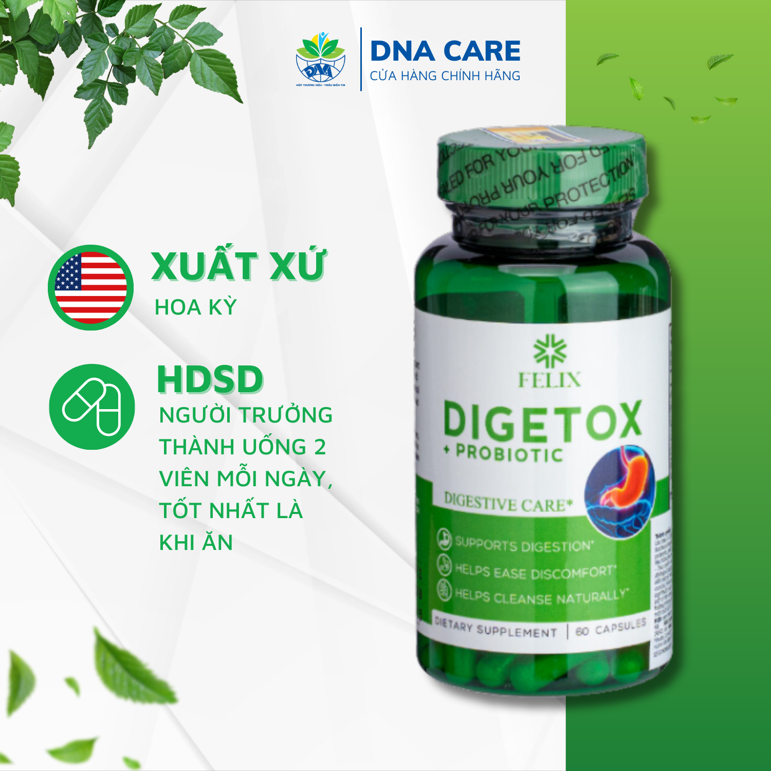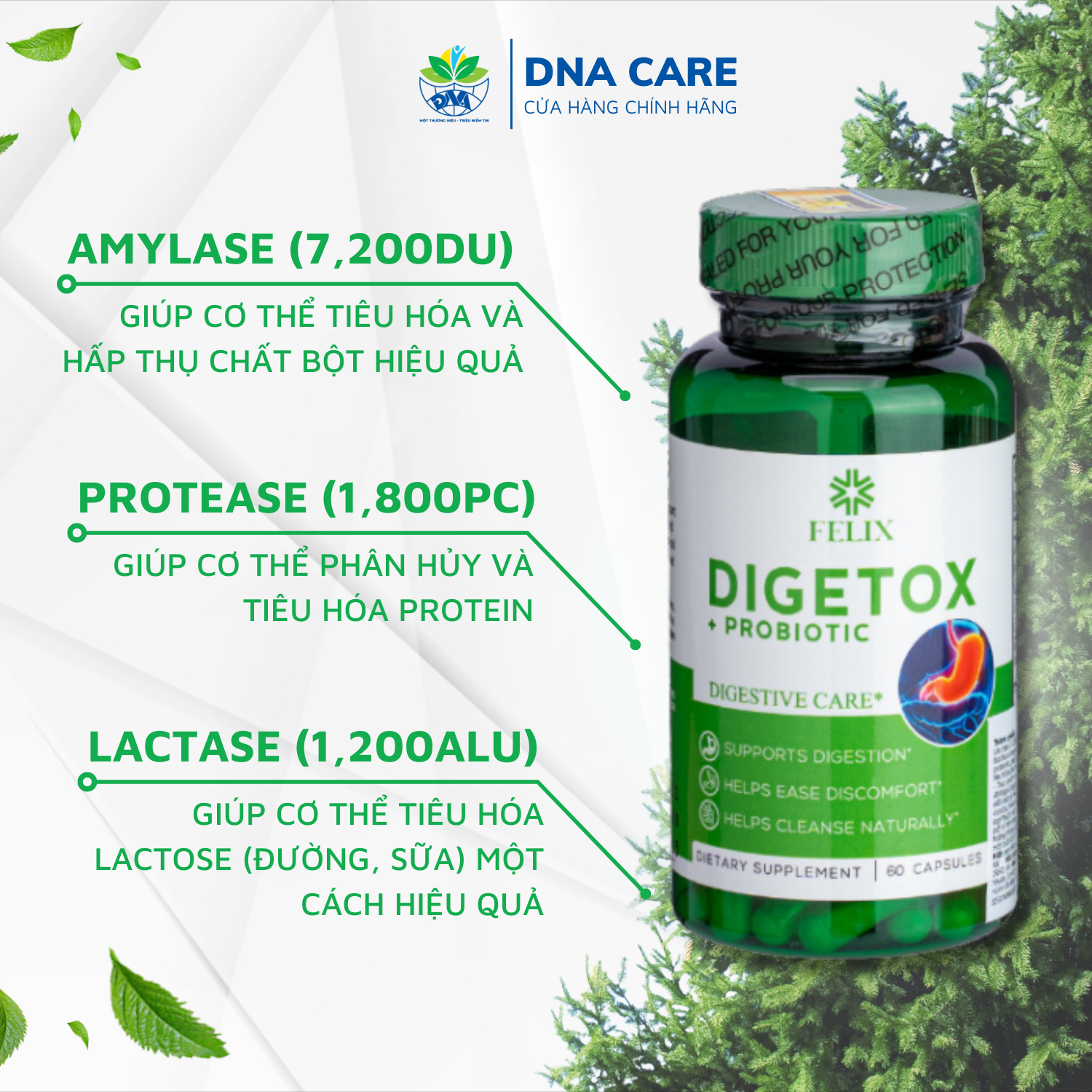 Viên uống bổ sung men tiêu hóa Enzym Digetox Probiotic lọ 60 viên