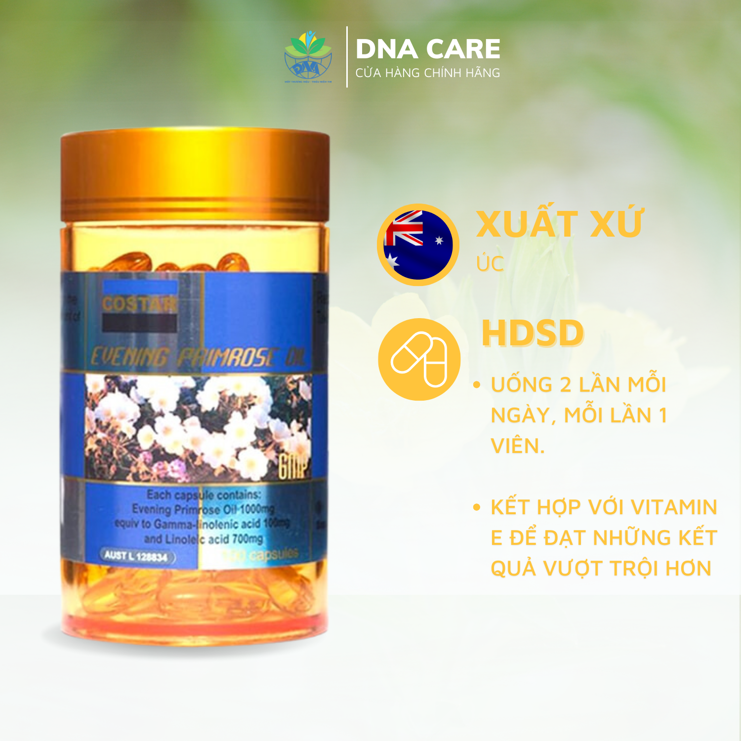 Viên uống nội tiết tố hoa anh thảo Costar Evening Primrose Oil hộp 100 viên